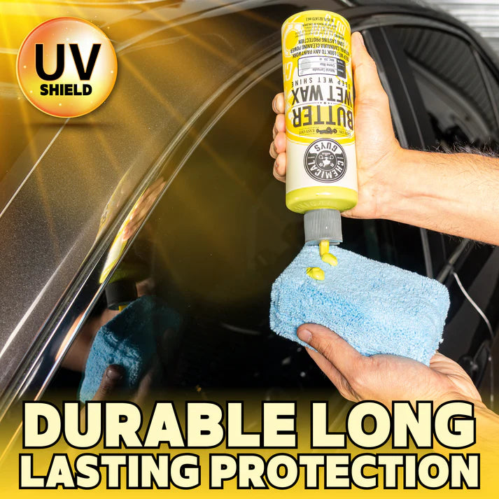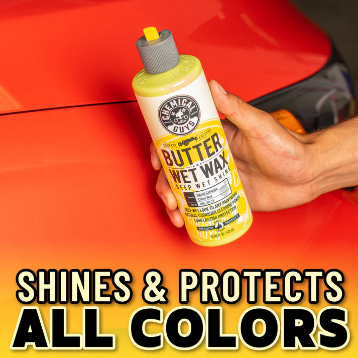Butter Wet Wax is a smooth, liquid creme wax that melts into the paint like butter for easy on/off application to give you the deepest, wettest look imaginable in a matter of minutes.