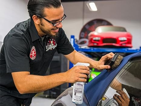 Cleaning with the right chemical makes all the difference between good and bad results. Convertible tops are difficult to clean with soap and water, which can stain sensitive fabrics. Convertible Top Cleaner safely removes stains and dirt from any soft convertible top. The unique formula breaks down stains and lifts them away in seconds. Works on vinyl, fabric, canvas, textile, and synthetic soft tops. The innovative cleaner is specially formulated to work on virtually any convertible soft top and tonneau cover.