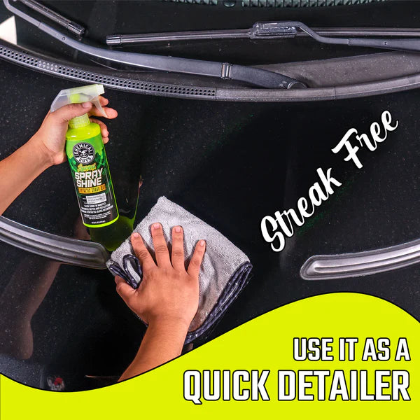 Lucent Spray Shine Synthetic Spray Wax is an easy to use synthetic super polymer spray wax that rapidly delivers an extreme streak-free shine and slickness to all glossy painted surfaces, glass, metal, chrome, and wheels!
