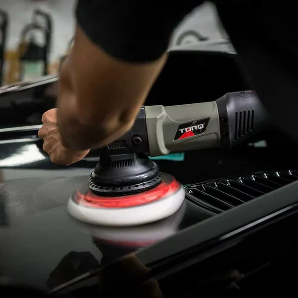 Heavy polishing with abrasive compounds and rotary buffers can leave holograms and compound marring. Use the White Pad with a fine finishing polish like V38 Final Polish to refine the finish and restore gloss and a deep lustrous shine. The Medium-Soft polishing pad removes holograms, buffer trails, and compound marring from painted finishes to restore gloss, depth, and clarity to reflection.